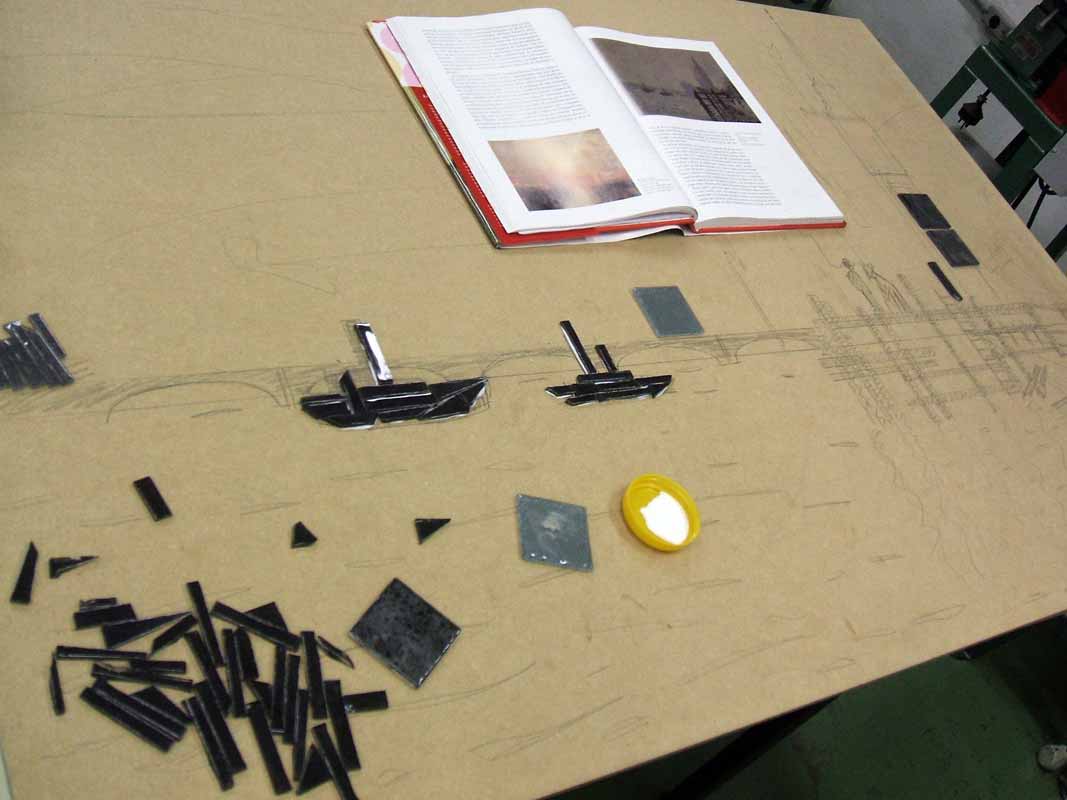 Durante o curso de Artes Plásticas da UBC, nas aulas do Profº Norberto Duque tivemos aula de mosaico, eu fiz um mosaico grande, (0,93 x 1,38) foram 6 meses colando peça por peça de vidro colorido, mas valeu a pena no final.